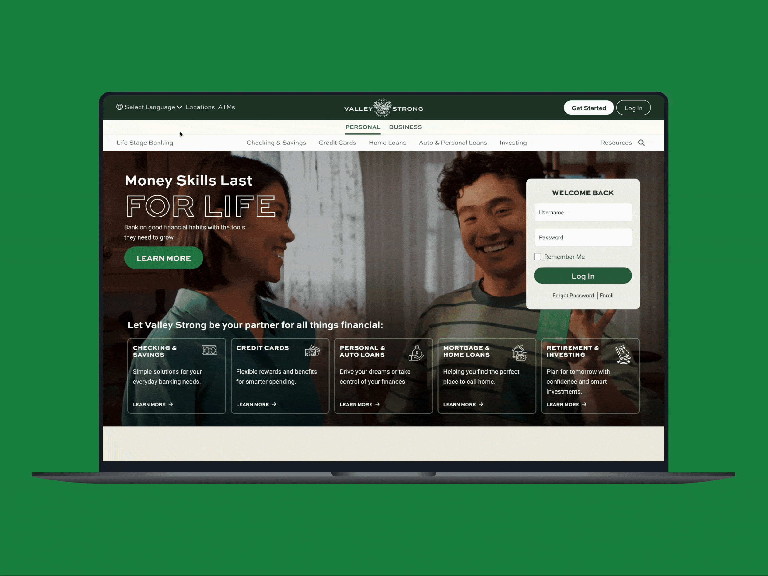 Valley Strong Credit Union shares a long-standing partnership with Meaningful Works. With over 100 products on offer, the goal of this website redesign was to create a digital experience that authentically represented their full range of services, for both individual and business audiences.