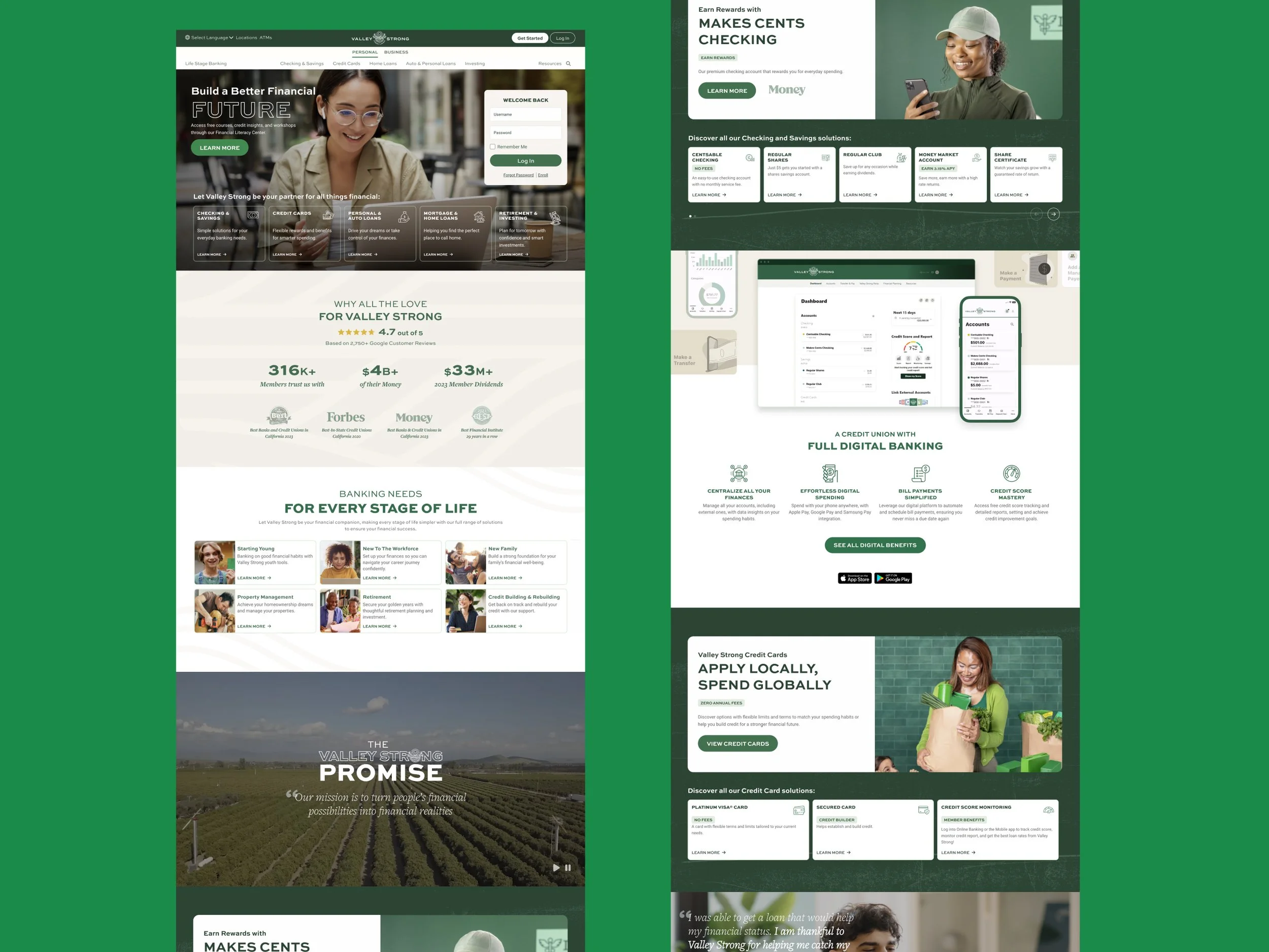 What sets Valley Strong apart is their commitment to human connection and going above and beyond to support their members' financial success. The redesign aimed to bring that same spirit into the digital space through intentional storytelling and an inspiring vision of what financial success can look like.